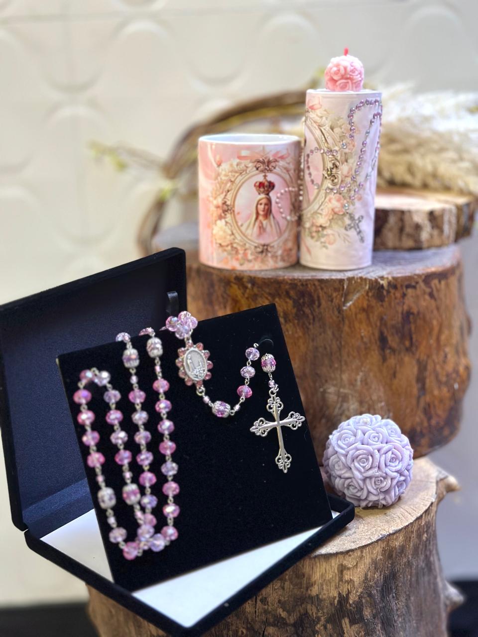 01 terço Aparecida 01 terço Fátima 2 caneca sagrada família